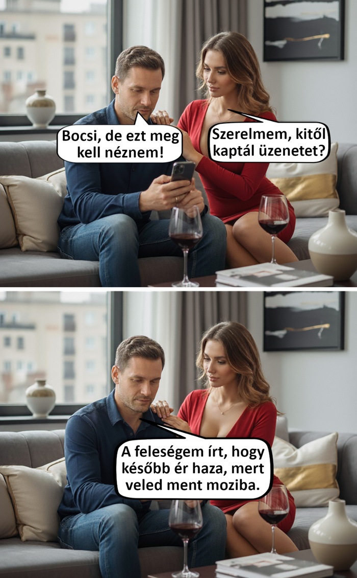 6. Imádom, hogy ha néhanapján hamarabb eljövök a melóból, hogy meglepjem a feleségemet, ő pedig rémült arccal mindig ugyanazzal a kétszavas kérdéssel fogad: