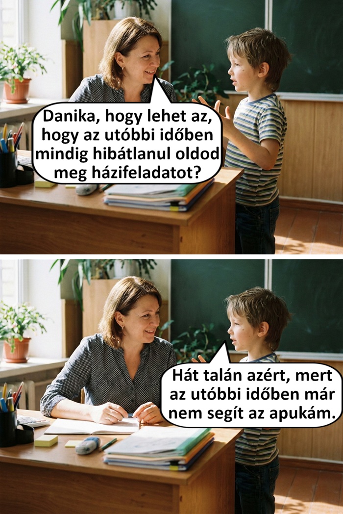 12. A tanár néninek szemet szúrt, hogy Danikának gyanúsan feljavultak az eredményei egyik pillanatról a másikra. Kiderült, hogy nem ok nélkül.