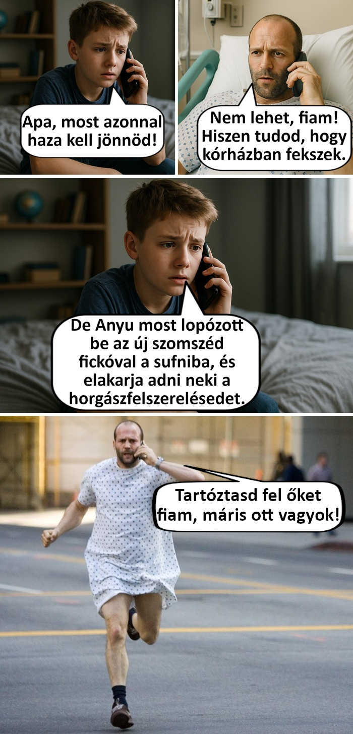 1. Ugyan azt nem tudjuk, hogy az apa milyen problémával feküdt a kórházban, de az biztos, hogy a fia szavai hatására hamar kilábalt belőle.