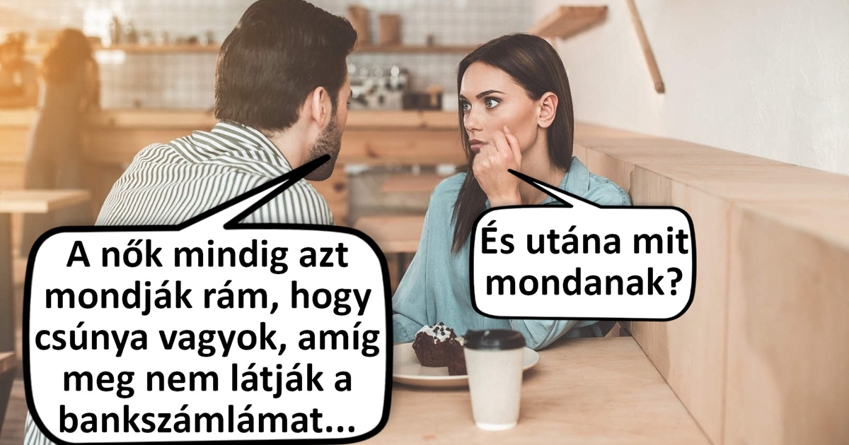 8. A fickó elvitt egy bárba randizni. Én egy pohár bort rendeltem, ő pedig csak egy pohár vizet. Megvárta, míg megiszom a bort, majd pedig így szólt: