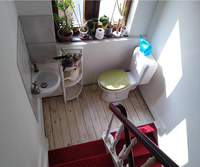 8. Kivettem néhány napra egy szobát egy airbnb-n hirdetett szálláshelyen, aminek a közös mosdója a lépcsőfordulóban van kialakítva. Erről valahogy nem tett említést a bérbeadó a hirdetésben.