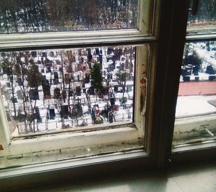2. A tulajdonos azt mondta, hogy a lakás tengerre néző kilátással rendelkezik, ezért magas a bérleti díj. Nos, végülis nem hazudott, ugyanis a lakásnak ez az "ablaka" tényleg a tengerre néz.