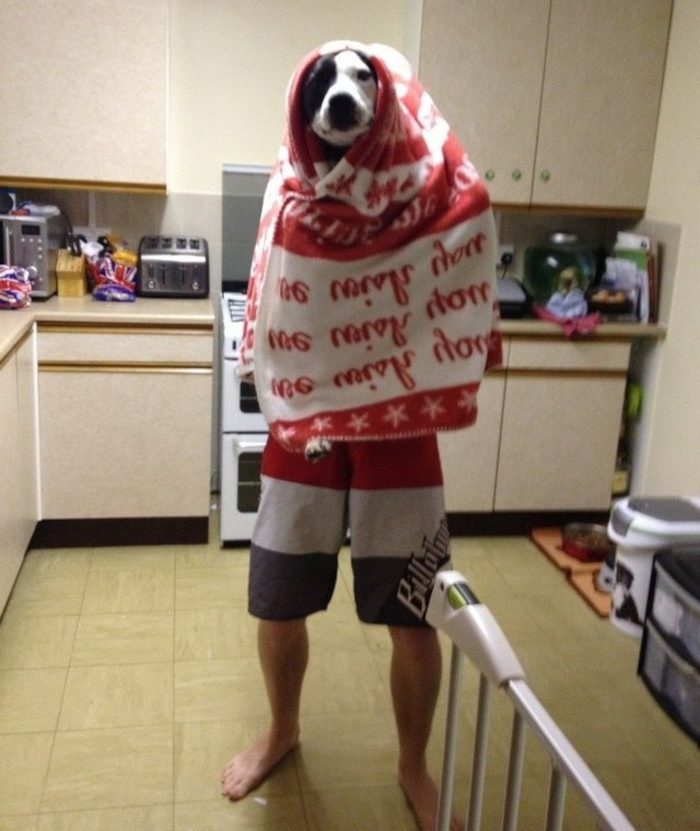 15. A nappaliban voltam és meghallottam, hogy a konyhában a férjem azt hajtogatja a kutyánknak, hogy maradjon nyugton. Bementem megnézni, hogy mégis mit csinálnak, és ez a látvány fogadott:
