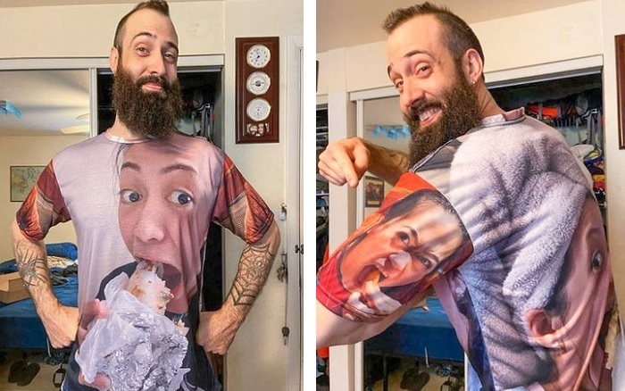 6. A férjem csináltatott magának egy pólót olyan nem túl előnyös fotókból, amiken én vagyok látható zabálás közben.