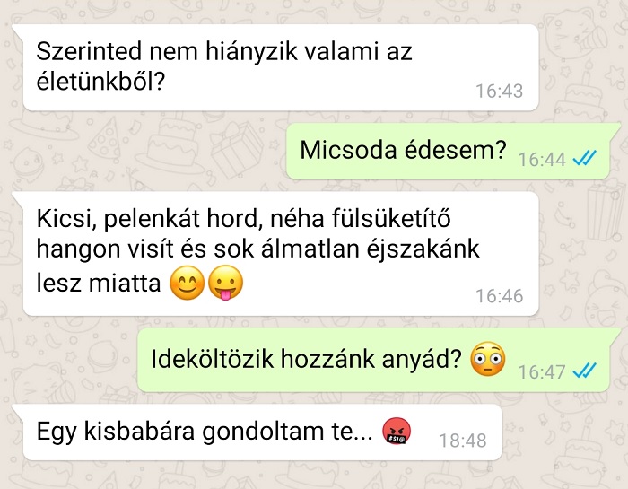 3. Én: Örülnék neki, ha nem költenél el több pénzt teljesen felesleges és értelmetlen dolgokra.