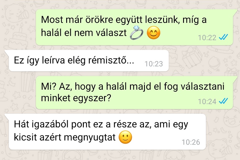 9. Hát ha így folytatja a poénkodást, akkor lehet nem lesz ez a házasság annyira hosszú életű.