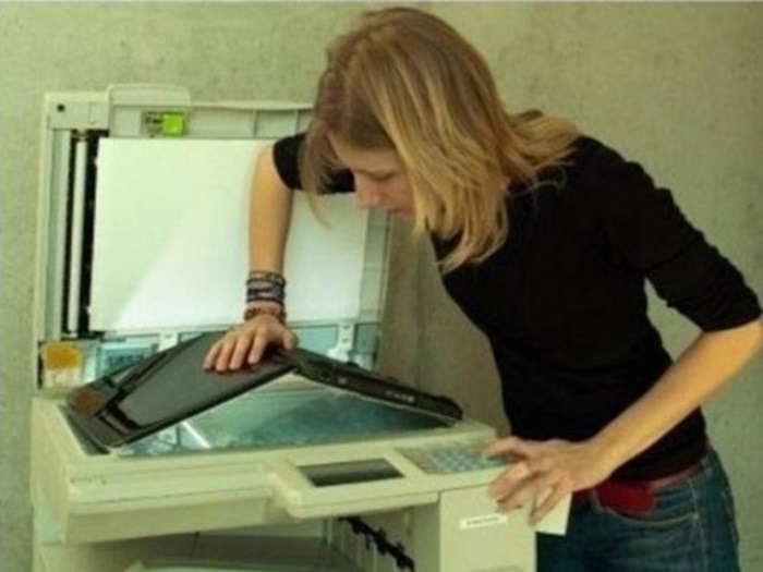 8. Az új irodai munkatársat megkérte a főnök, hogy nyomtasson ki neki egy dokumentumot, ám a nyomtató sehogy sem akart működni. Ő viszont szeretett volna jó benyomást tenni a főnökre, ezért kitalálta, hogy márpedig ő akkor is kinyomtatja a dokumentumot.