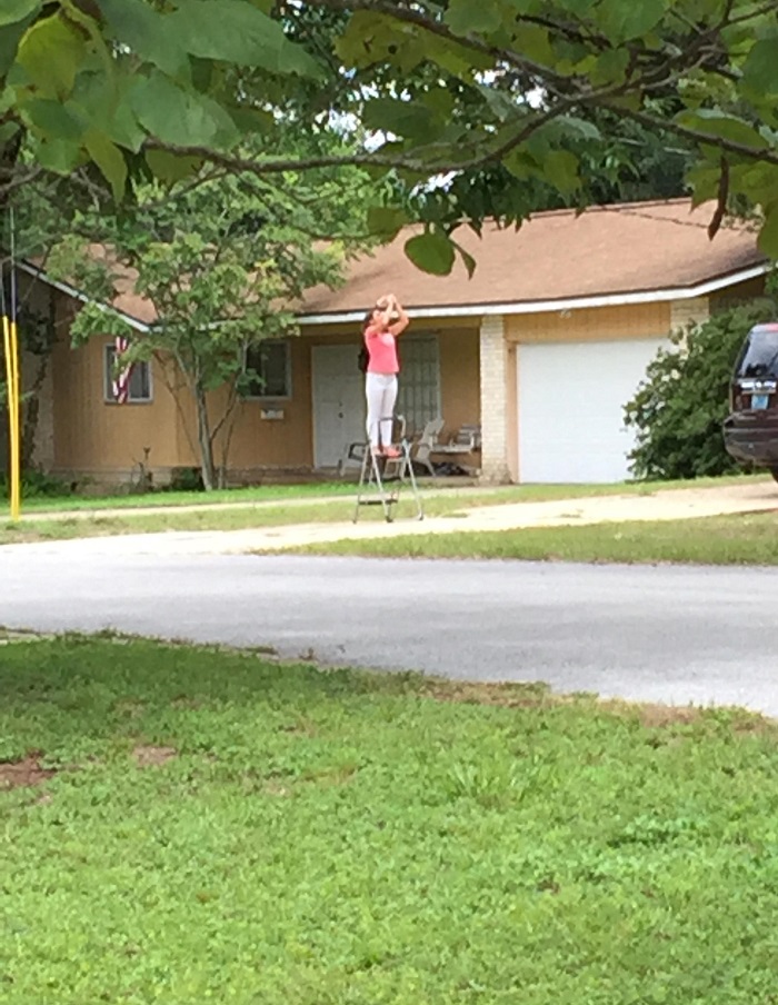 9. A szomszédom felállt egy kislétrára, hogy közelebbről készíthessen fotót a napfogyatkozásról: