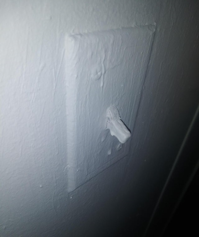 3. Először megörültünk a feleségemmel, hogy végre találtunk egy szobafestőt, aki ráér és még nem is dolgozik annyira drágán, de aztán hamar az arcunkra fagyott a mosoly, amikor megláttuk, hogy a fallal együtt a villanykapcsolókat is lefestette.