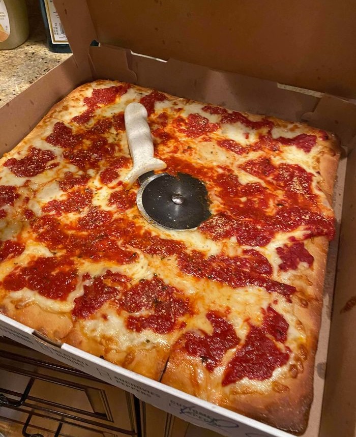 7. Pizzát rendeltünk vacsorára, és extra feltétként kaptunk rá egy pizza szeletelőt is.