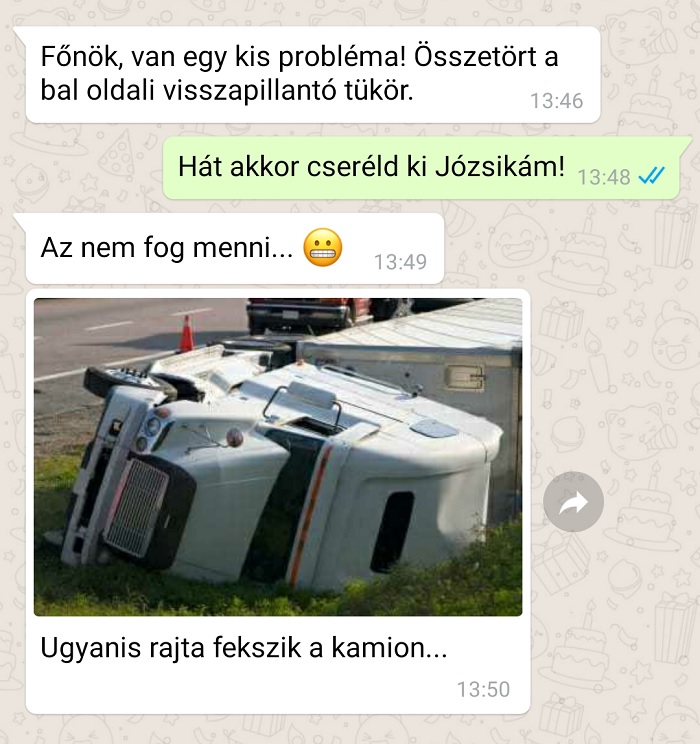 13. A kamionos nem figyelt eléggé az iskolában a fizika órákon, és senki nem szólt neki, hogy a teherrögzítő heveder nem alkalmas mindenféle rakomány rögzítésére.