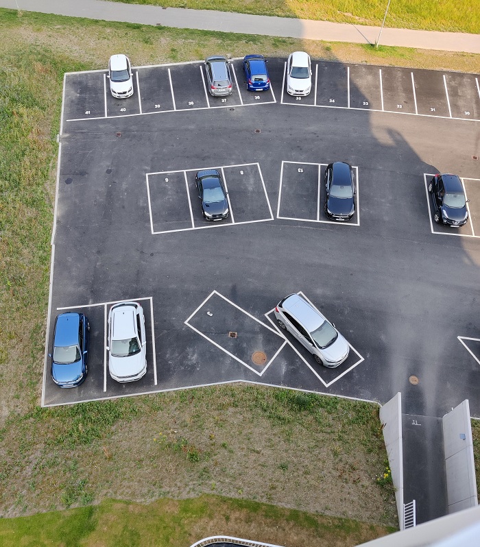 9. A nagyszüleim lakása előtt így alakították ki és festették fel a parkolóhelyeket: