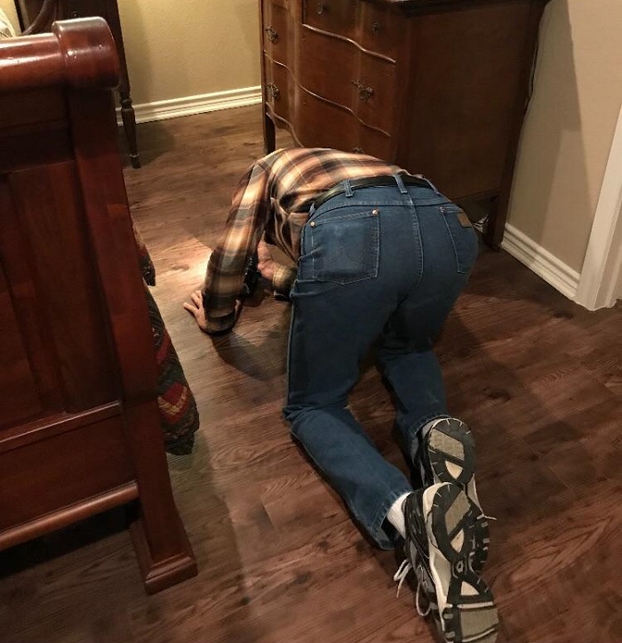 7. Vettem ajándékba egy robotporszívót a nagyszüleimnek, hogy egy kicsit megkönnyítsem az életüket. A nagypapám viszont még nem igazán bízik benne, ezért követi mindenhová, és rajta tartja a szemét.