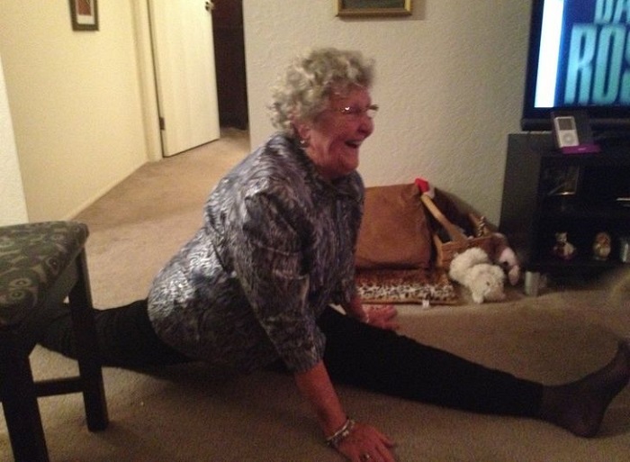 17. Próbáltam lemenni spárgába, de sehogy sem sikerült, mire a nagymamám megmutatta, hogyan is kell csinálni: