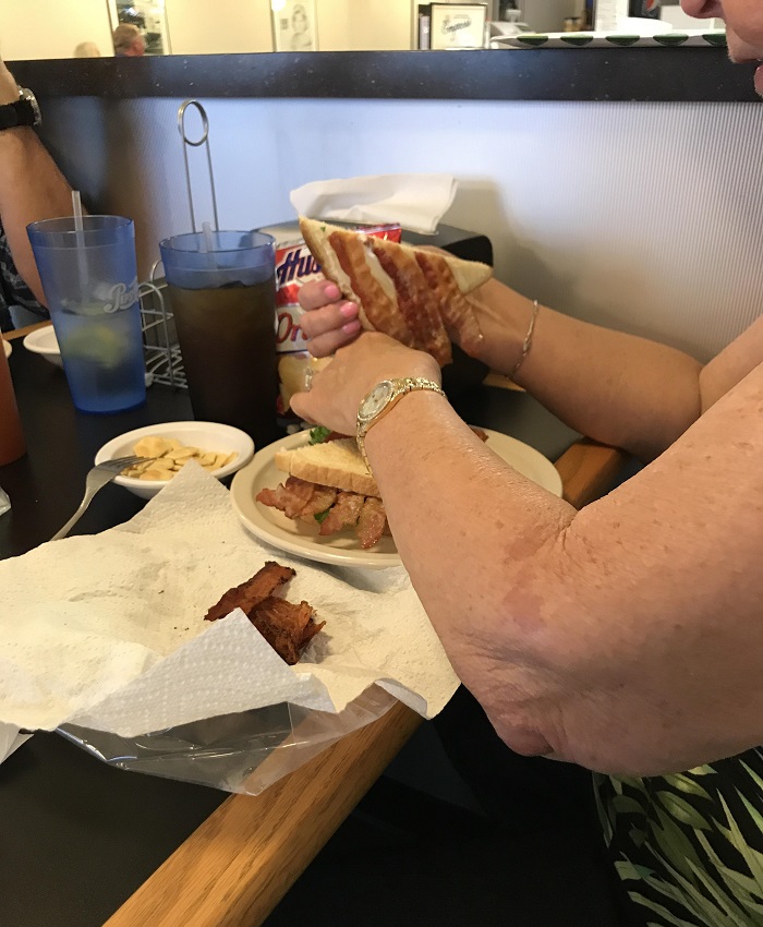 5. A nagyim nagyon szereti a bacont, ezért amikor étterembe megy, mindig visz magával egy kis sült bacont a táskájában, hogy felturbózza vele a rendelt ételt.