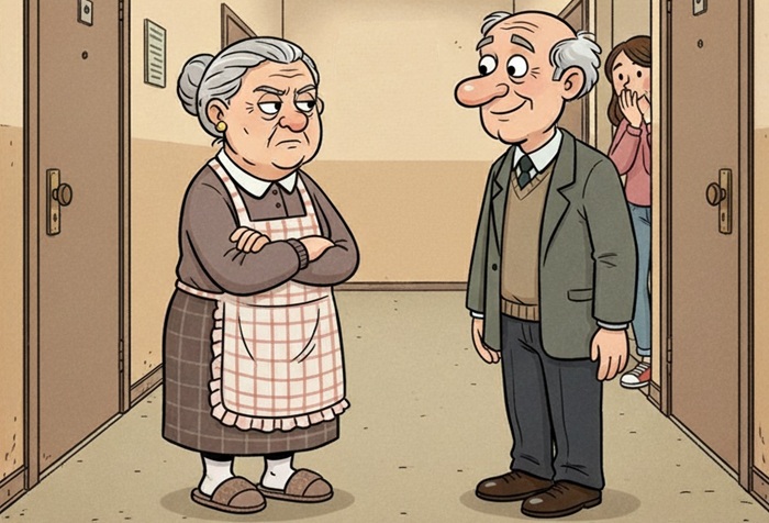 8. A nagymamám igyekszik elkerülni a szomszédját, mert a bácsi szerelmes belé. A mai napon, amikor mégis összefutottak a folyosón, a következő párbeszédnek voltam a fültanúja: