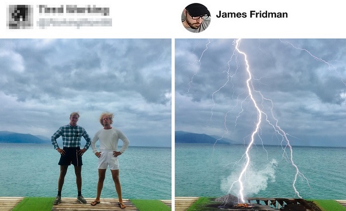 (4) A haverommal arra gondoltunk, hogy elég vagányul festene, ha villámokat szórna az ég a fotónkon. Úgy tudom, hogy te profi vagy az ilyesmiben.