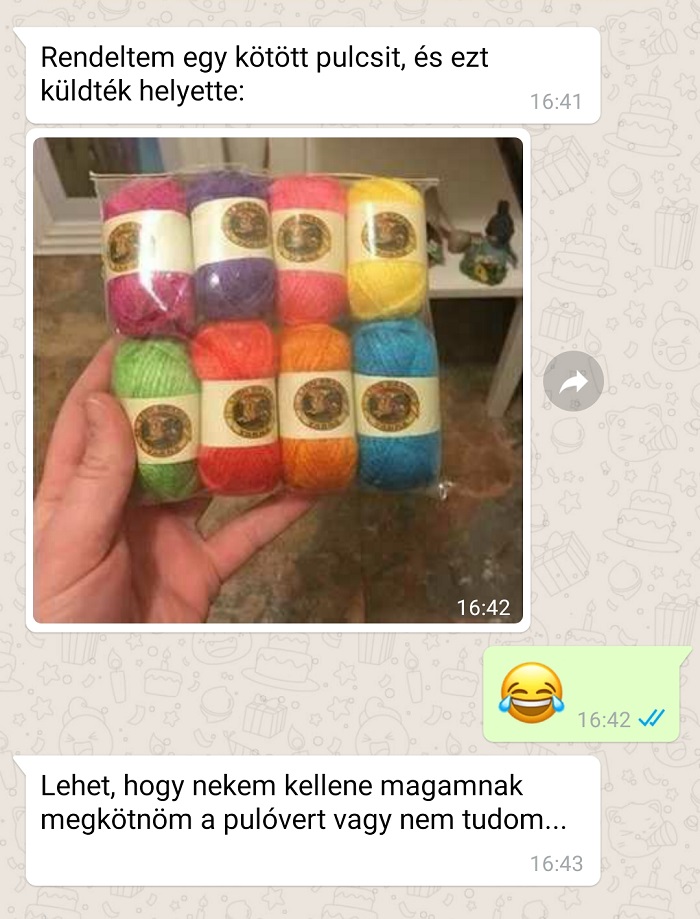 14. Arról valahogy nem tettek említést a vásárlók számára, hogy ez egy "csináld magad" pulóver.