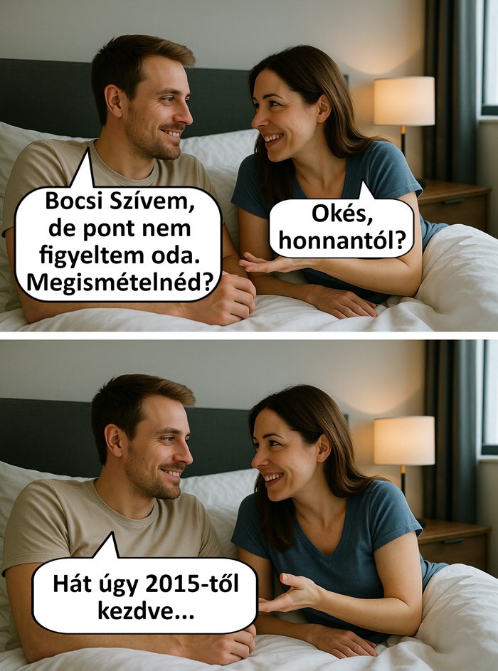 4. Este lefekvés előtt megkérdeztem a férjemtől, hogy hagyott-e nekem a sonkából reggelire, mire azt válaszolta, hogy "Persze, drágám."