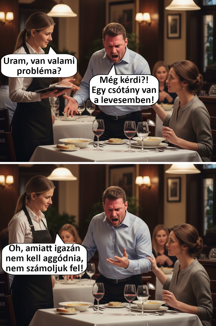 18. A vendég felkapta a vizet, pedig mint kiderült, teljesen indokolatlanul