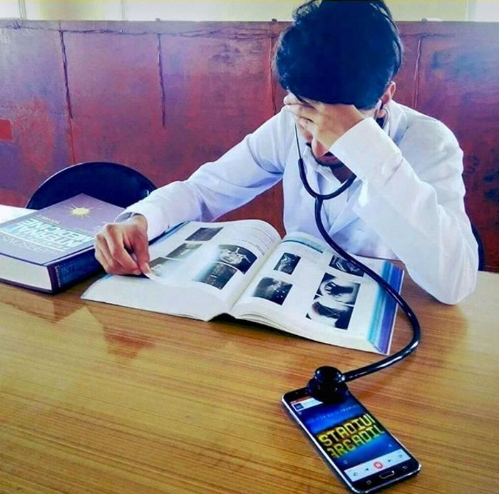 9. Egy orvostanhallgató akkor is feltalálja magát, ha véletlenül otthon felejti a fülhallgatóját:
