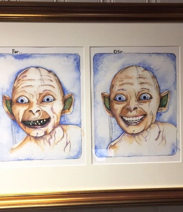 12. A fogorvosomnál ez az "előtte - utána" kép van kirakva a falra a váróban: