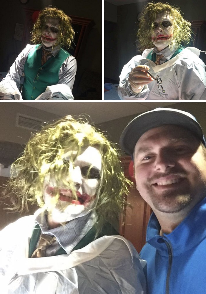 16. A feleségem Halloween este szült, az orvosunk pedig egy beöltözős buliból rohant be a kórházba levezetni a szülést. Persze, amikor bejött, akkor mondta nekünk, hogy gyorsan átöltözik, de a feleségemnek annyira megtetszett a szerelése, hogy azt mondta neki, maradjon inkább a Joker jelmezben a szülés alatt.