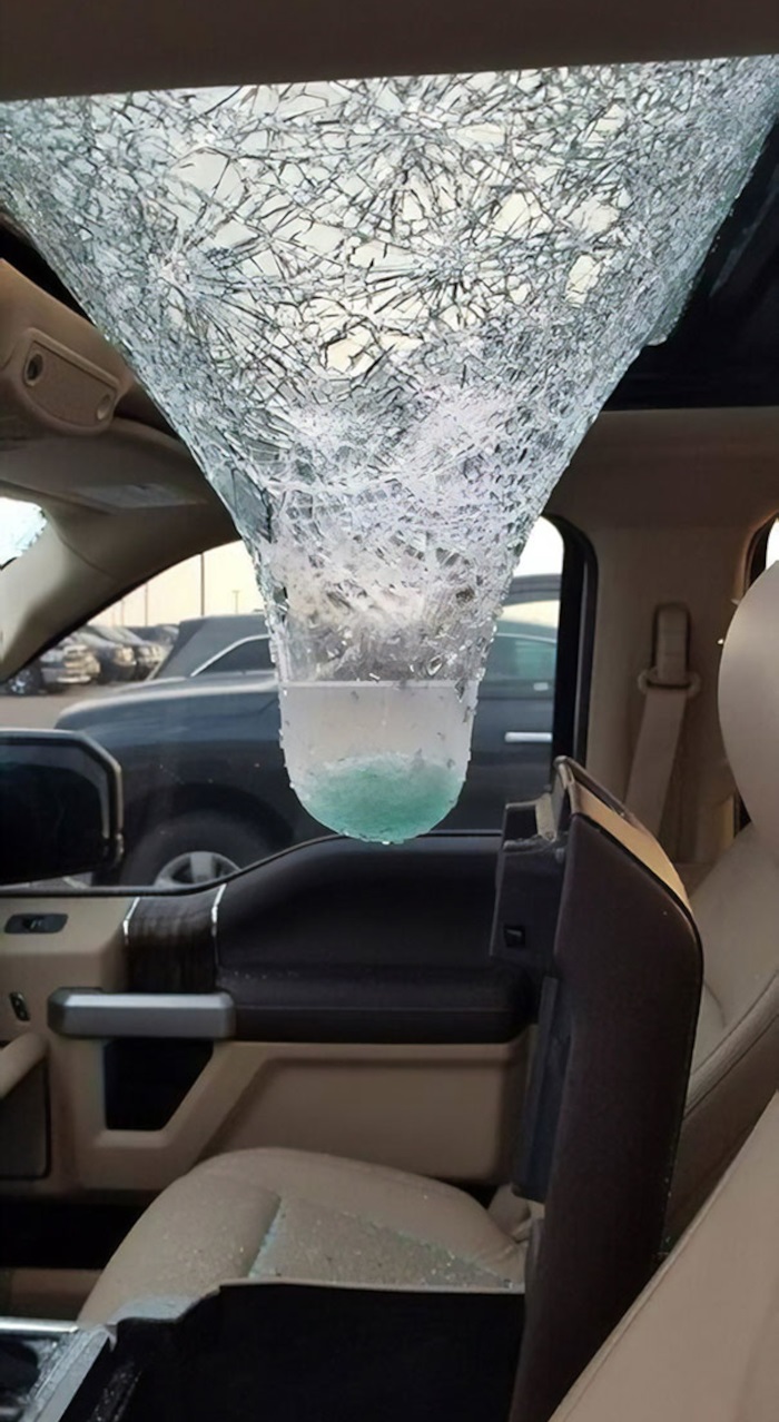 10. Kiderült, hogy az autóm napfénytetője nem túl jól bírja a jégesőt.
