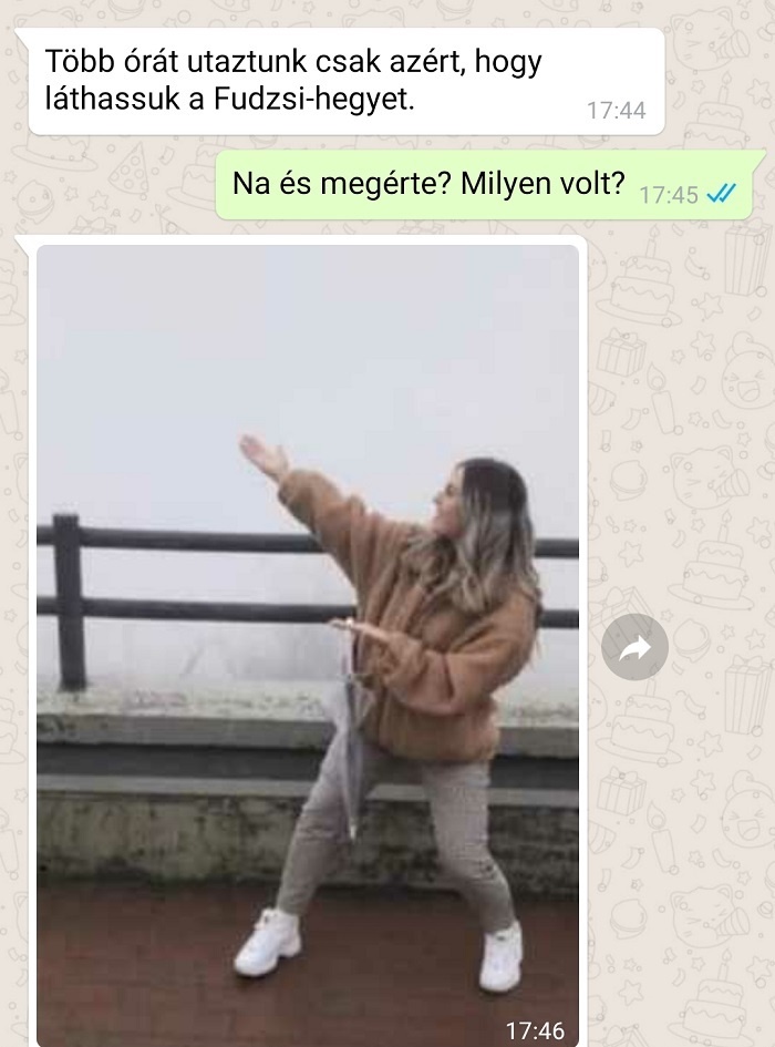 - Jaj de ronda vagyok ezen a fotón, csinálhatnánk egy másikat?