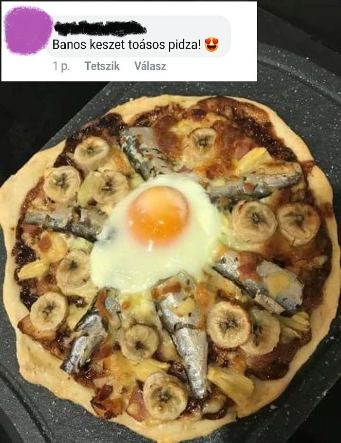 12. Sokan vannak, akik szerint már az is súlyos vétek, ha valaki ananászt rak a pizzára. Ennek fényében kíváncsiak lennénk, hogy vajon ők milyen véleménnyel lennének erről a banános-halas kompozícióról:
