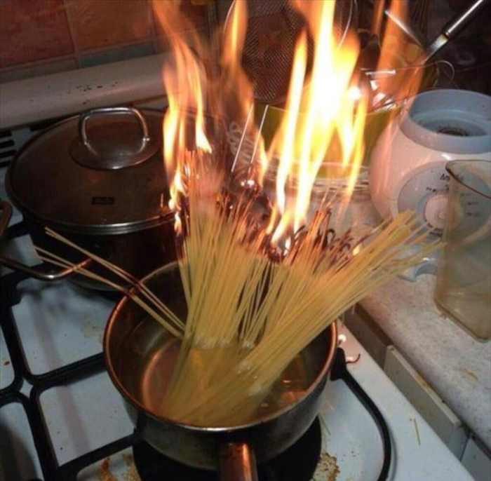15. A feleségem már hónapok óta rágta a fülemet, hogy szeretne egy új tűzhelyet, és úgy tűnik, hogy ma végleg elfogyott a türelme. Na de a viccet félretéve, ez az eredménye, ha fogalmad sincs a kukta helyes használatáról, és úgy állsz neki főzni benne.