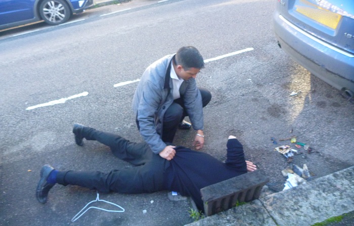 8. A vőlegény tanúja minden erejével próbálja kihalászni a csatárnából a véletlenül beleejtett eljegyzési gyűrűket: