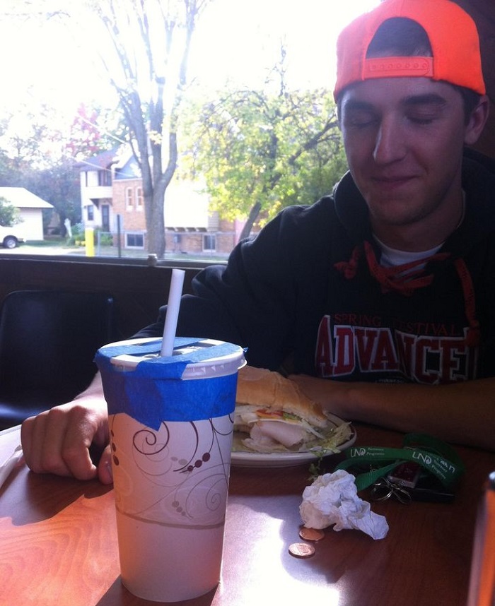 3. Miután egymás után kétszer is sikerült kiborítanom az üdítőmet az étteremben, a pincérnő szigetelőszalagot vett elő, és leragasztotta a poharam tetejét, hogy ne fordulhasson elő mégegyszer.
