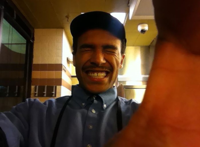10. A feleségemmel megkértük a pincért, hogy készítsen rólunk egy fotót. Azt mondta, hogy csinál többet is, és ezért mindenféle instrukciókat adott, hogy mikor, hogyan pózoljunk. Amikor visszadta a telefonomat, ezt az egy képet találtuk benne.