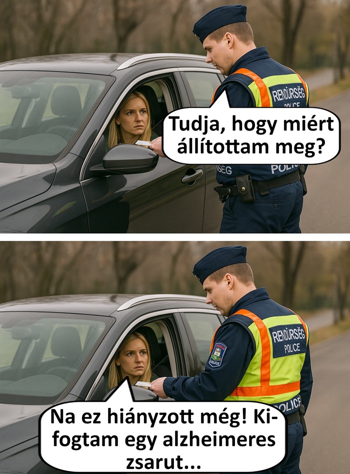1. Reméljük, hogy az igazoltatő rendőrnek egy ilyen szituációban is van humorérzéke, mert ha nem, akkor nem lennénk a hölgy helyében.