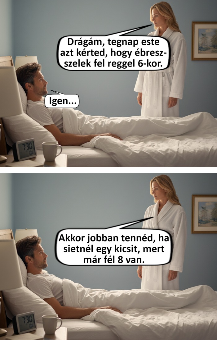 8. Ha összevesztél a feleségeddel, és haraggal fekszetek le, akkor nem a legjobb ötlet szívességet kérni tőle másnapra.