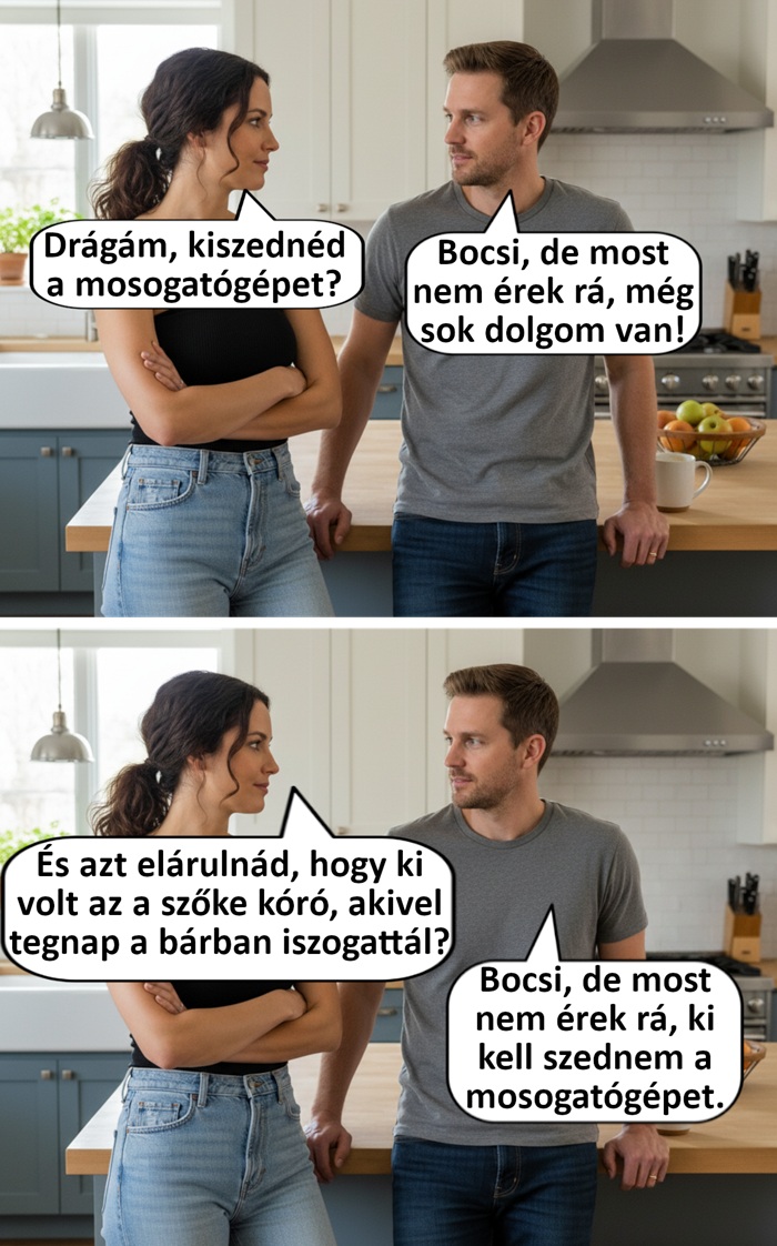 1. Csak ámulunk és bámulunk, hogy a férj milyen "ügyesen" kivágta magát a szorult helyzetből.
