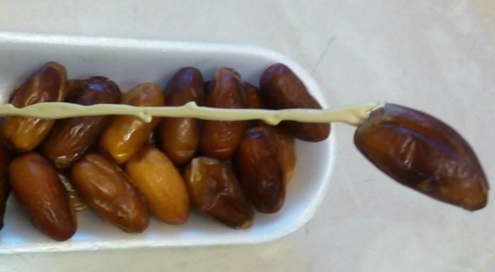 A pálcika valójában egy marketingtrükk része. A drágább, prémiumnak számító szárított datolyákat úgy árusítják, hogy rajta vannak az ágon.