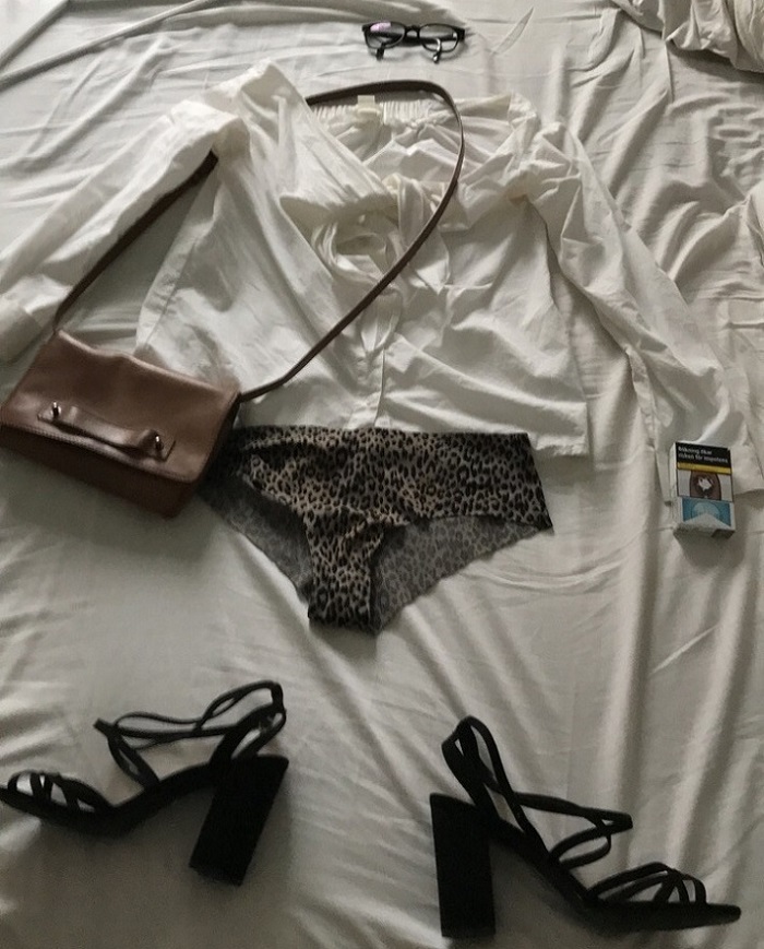 17. Késésben voltam egy találkozóról, ezért megkértem a férjemet, hogy készítse ki a cuccaimat, amíg én elmegyek zuhanyozni. Amikor zuhanyzás után benyitottam a hálószobába, megláttam hogy a férjem az ágyon ezt a szettet készítette össze a számomra.