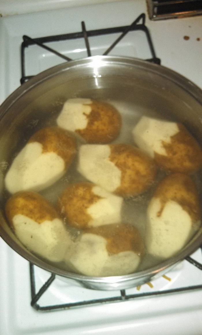 15. Hazacsörögtem a férjemnek, hogy mire hazaérek, hámozza meg a burgonya felét, és tegye fel főni a tűzhelyre. Ez a látvány fogadott: