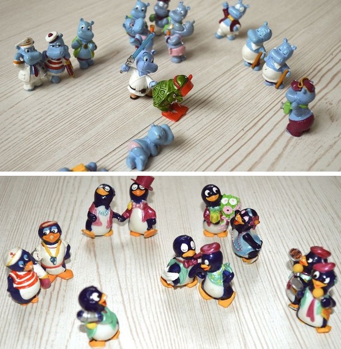 Bőszen gyűjtögettük a vízilovakat és a pingvineket a kindertojásokból. A fiúk húsvétkor sok új darabra szert tehettek.