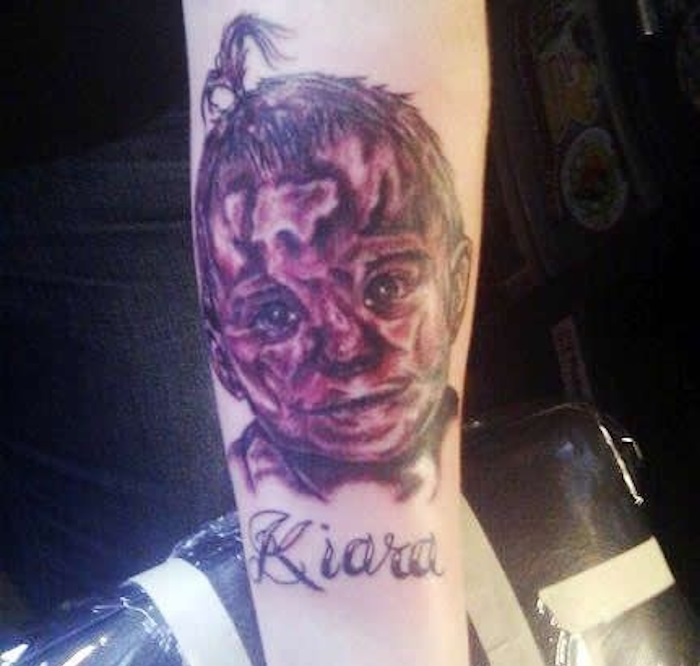 14. Kiara biztosan egy aranyos gyerek a valóságban, de legyünk őszinték, ez a tetoválás ezt egyáltalán nem adja vissza. És akkor még nagyon finoman fogalmaztunk.