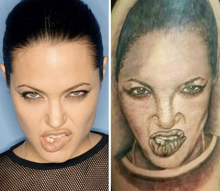 15. Már a mintául szolgáló Angelina Jolie fotó sem túl előnyös választás, de az elkészült tetoválásnak azt is sikerült alulmúlnia.