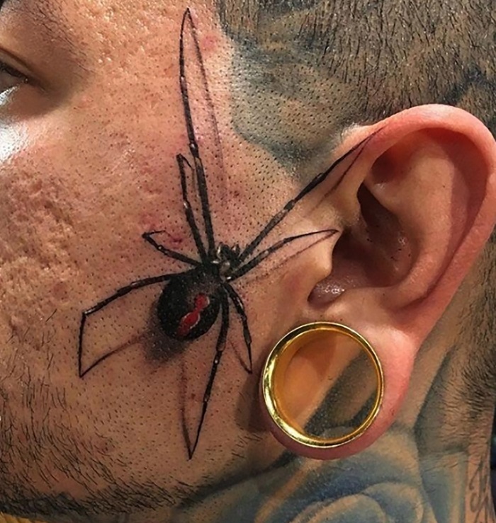 16. Ebben az esetben nem a kivitelezéssel van a probléma. Sőt, talán túl élethűre is sikerült. A kérdés csak az, hog mégis mi visz rá valakit, hogy egy Fekete özvegy pókot tetováltasson az arcára? Na meg az, hogy milyen esélyekkel indul így az úriember, amikor egy állásra pályázik?